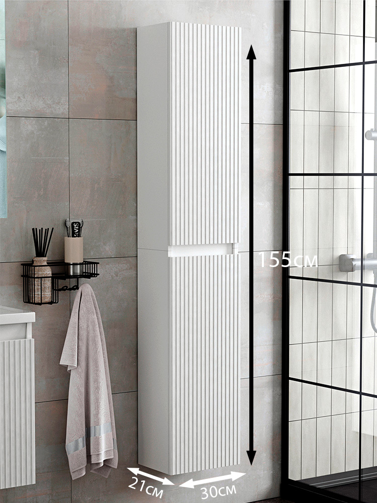Шкаф пенал навесной 30 белый глянец фрезерованный комплект