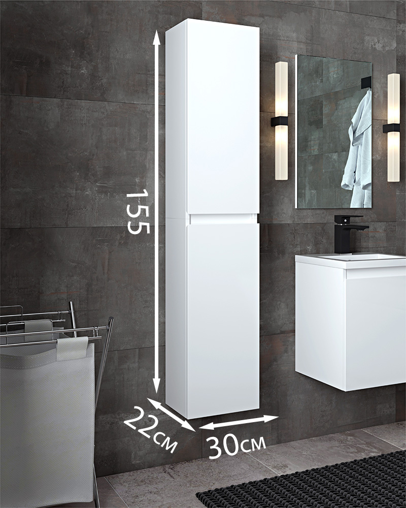 Шкаф пенал в ванну 30 Белый подвесной матовый комплект