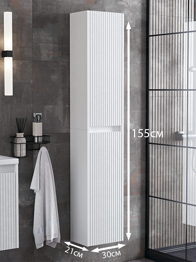 Шкаф пенал в ванну навесной 30 белый матовый комплект