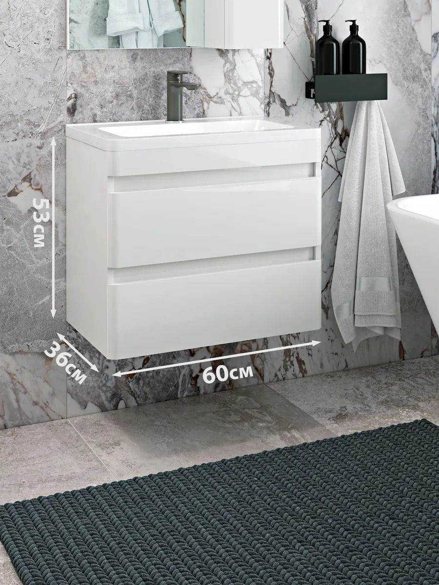 Тумба с раковиной в ванную 60 с ящиками подвесная белая