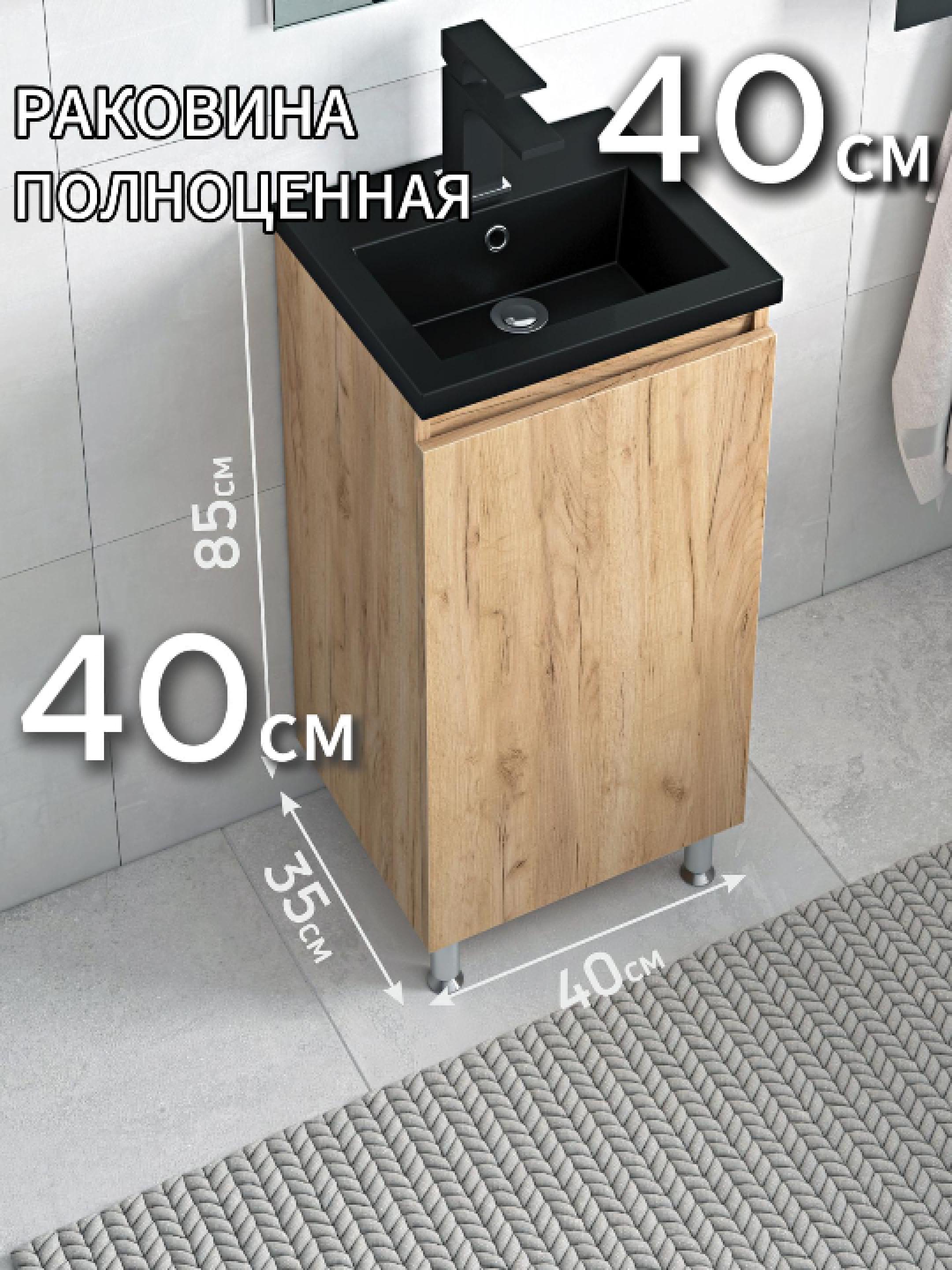 Тумба с черной раковиной в ванную 40 напольная подвесная