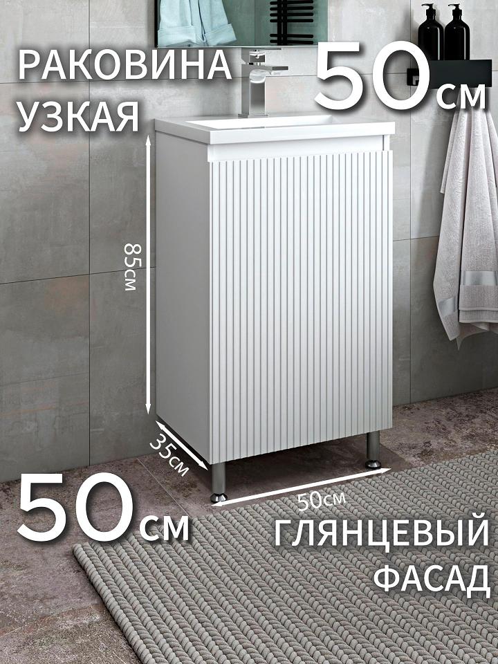 Тумба с раковиной в ванную 50 напольная с рифленым фасадом
